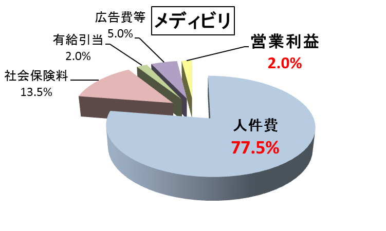 メディビリでは、営業利益と経費を見直し、ご利用者様の人件費を上げる工夫をしております。