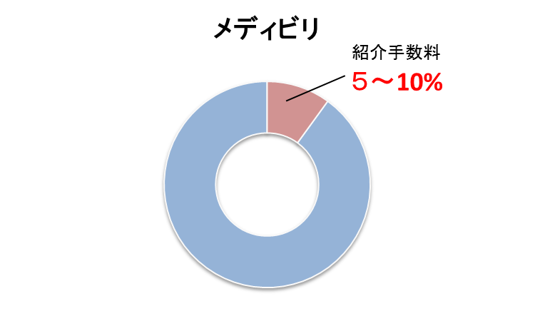 メディビリでは、紹介手数料を業界平均の1/6~1/3と大きくカットしています。